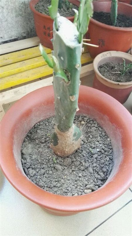 但是有的花友說見過龍骨嫁接蟹爪蘭,其實不是,那是量天尺,也是仙人掌科的植物。不過在不同的地方龍骨也叫量天尺。