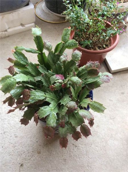 先不要施肥,環(huán)境或土壤過悶,導(dǎo)致蟹爪蘭有點生長不良。放陽臺通風(fēng)散光處!葉面每日噴霧幾次,你試下看有沒好轉(zhuǎn)。如果葉片越來越蔫,狀況沒有改善,可能是根出了問題,可以考慮換土修根。